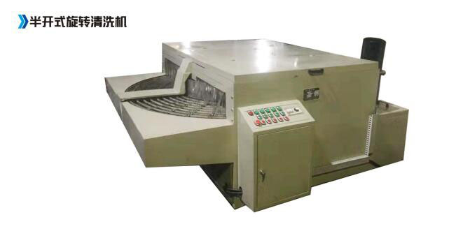 工藝流程:上料→高壓噴淋清洗→風(fēng)干→下料 半開式旋轉(zhuǎn)清洗機(jī)的特點(diǎn)和封閉式旋轉(zhuǎn)清洗機(jī)的區(qū)別在于,工件放入,轉(zhuǎn)一圈又回到原點(diǎn),方便與上下料。